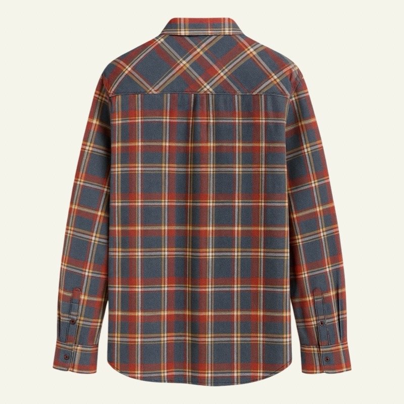 Disponible en dos combinaciones de color: azul grisáceo y rojo con tonos cálidos, esta camisa se adapta fácilmente a diferentes estilos, ya sea como sobrecamisa ligera o como pieza principal en un look urbano.