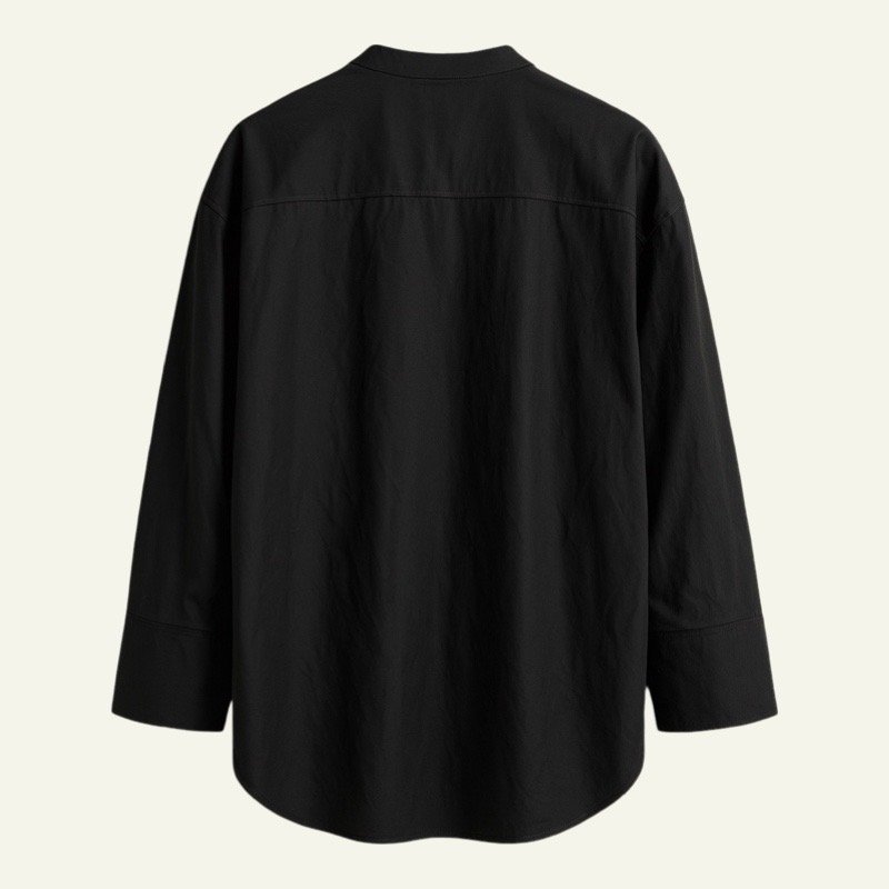 La camisa larga negra con lazo al cuello de Reondeu ofrece un estilo elegante y contemporáneo. Su tejido suave y fluido aporta comodidad extra, mientras que el corte recto y los botones frontales hacen de esta pieza una opción versátil para looks urbanos o formales.