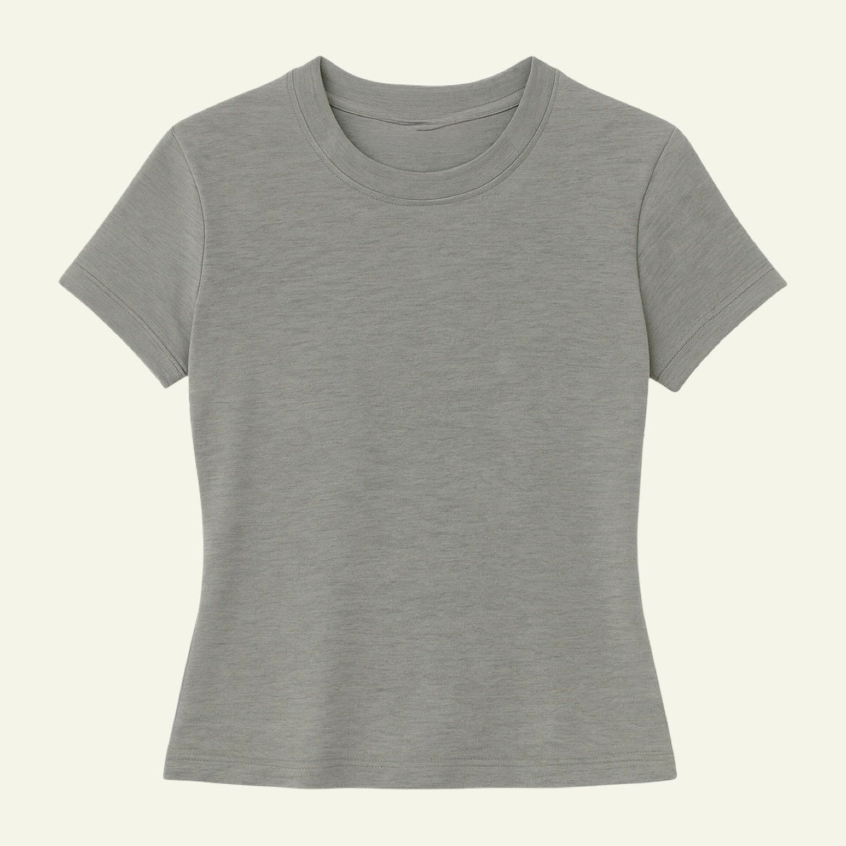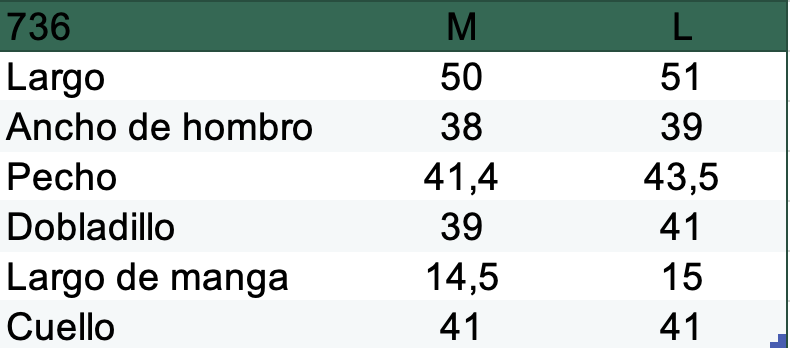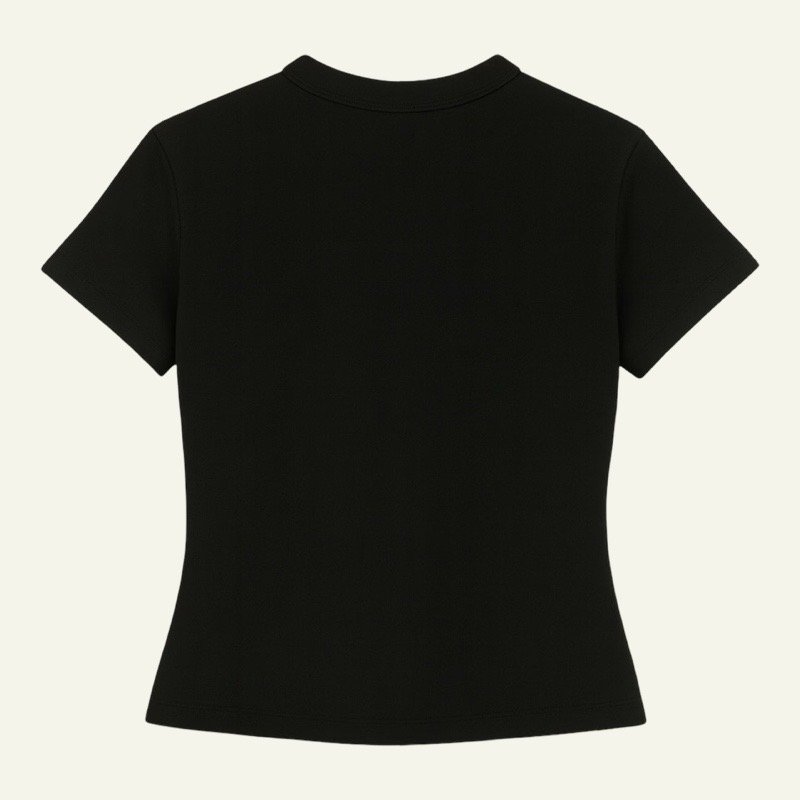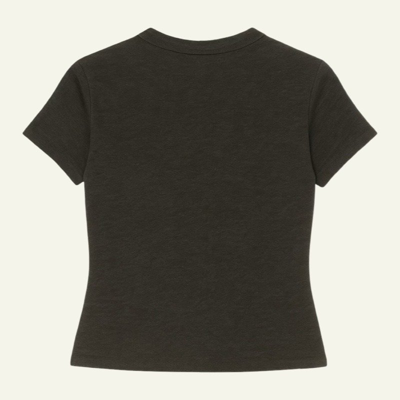 Colores disponibles: blanco, negro, gris claro, verde oscuro y marrón oscuro. Cuello redondo y manga corta.
