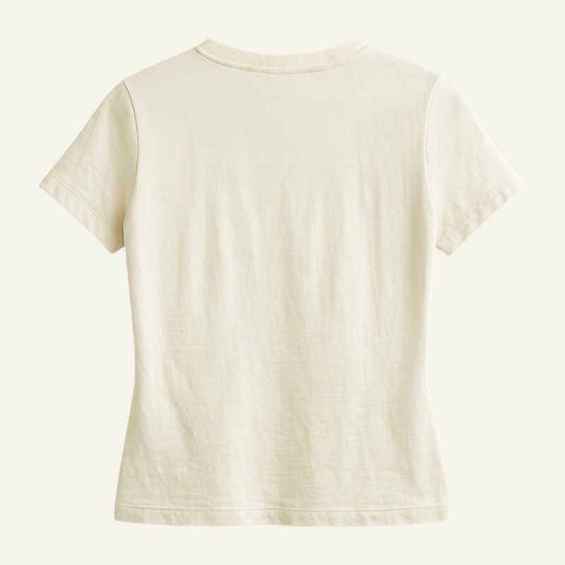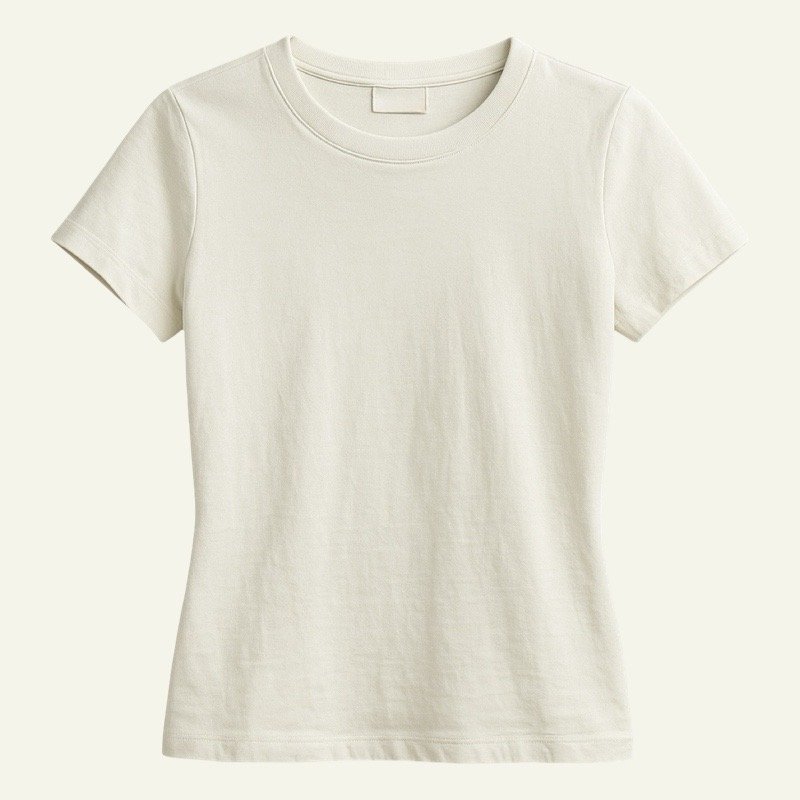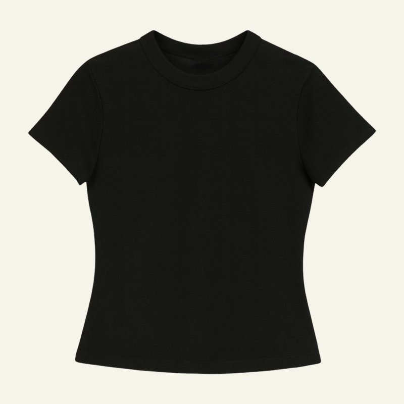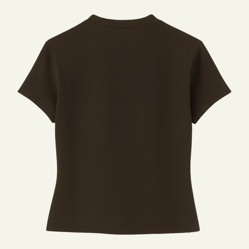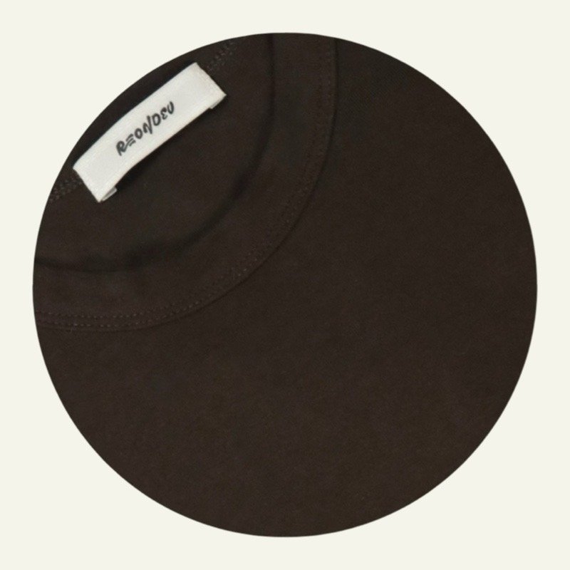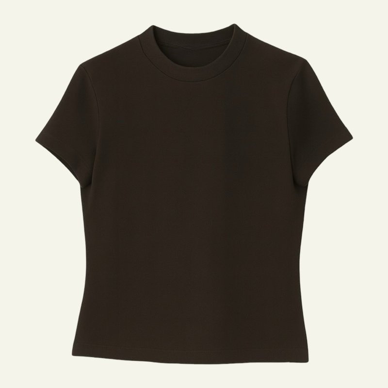La camiseta elástica ajustada de Reondeu combina comodidad y estilo minimalista. Confeccionada en un tejido suave y flexible, se adapta perfectamente al cuerpo. Disponible en blanco, negro, gris claro, verde oscuro y marrón oscuro.